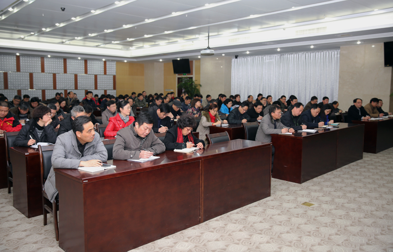 校领导彭怀祖、江应中、高建林、丁斐、蒋乃华、樊小东、顾菊平,各部门、各单位、各学院主要负责人出席学习会。