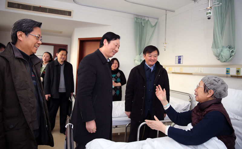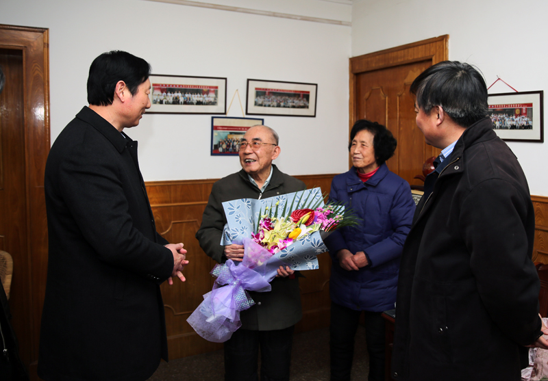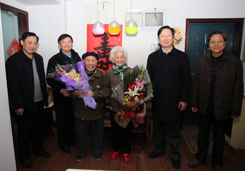 2月4日,校党委书记成长春,校长程纯分赴江苏省“医师终身荣誉奖”获得者杨锦媛、钱桐荪、姚伟然、严孝本等附属医院老专家的家中,向他们表示亲切的问候和节日的祝福。副校长、附属医院院长高建林一同慰问。