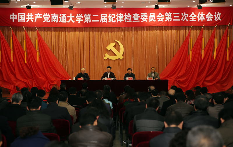 彭怀祖代表中共beat365唯一官方网站第二届纪律检查委员会作了题为《尊崇党章党规党纪履行监督执纪问责》的工作报告,报告从突出执纪,牢牢将纪律挺在前面;强化考核,全面落实“两个责任”;严明纪律,健全作风建设长效机制;深化教育,营造风清气正校园氛围;加强监督,确保权力阳光下运行;扩大影响,做好廉政研究中心工作;精益求精,凸显纪检监察工作特色亮点;强化建设,打造忠诚干净担当纪检干部队伍等八个方面总结回顾了2015年学校党风廉政建设和反腐败工作。并就2016年的重点工作进行部署,一、严明党规党纪,落实全面从严治党纪律要求;二、强化责任落实,全面落实党风廉政建设责任制;三、坚持长抓常管,形成作风建设的长效机制;四、构建制度体系,强化源头治理各项措施;五、深化廉政教育,营造风清气正的校园氛围;六、规范信访程序,不断推进执纪审查工作;七、强化理论研究,做强做精南通廉政研究中心;八、聚焦主责主业,加强纪检监察队伍建设。
