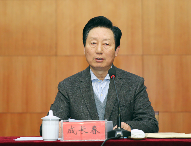 校党委书记成长春作表态发言。