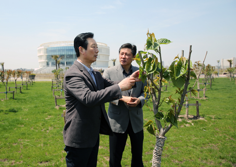 随后,成长春来到学生宿舍,察看生活设施,并与宿舍管理员和学生亲切交谈,详细询问了学生住宿情况,得知校区住宿条件舒适宜人,成长春表示欣慰。在校区的棕榈园、樱花园,成长春认真听取了校区绿化建设情况汇报,对启东校区师生员工积极参与校区绿化建设表示感谢。他指出,美化校园环境对丰富校园文化有着重要意义,启东校区是一个新建的校区,环境绿化、美化工作一定要跟上。