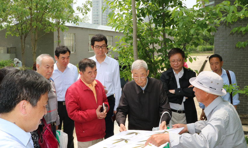 蒋士成院士和姚穆院士听取了高级农艺师曹云泉关于“通謇1号”鸡脚棉品种特性和研发前景的汇报,并到实验田里仔细察看了“通謇1号”的长势,对鸡脚棉的培育和种植提出指导性意见。