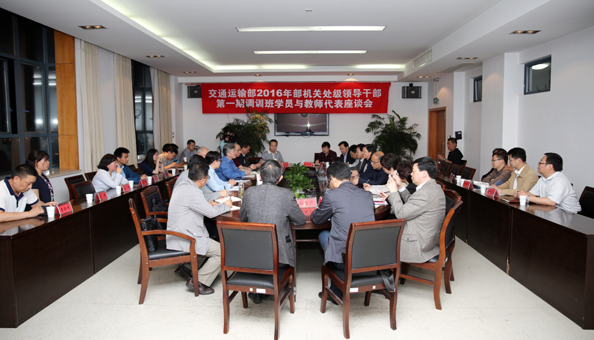交通运输部处级干部调训班学员与beat365官网教师代表座谈交流。