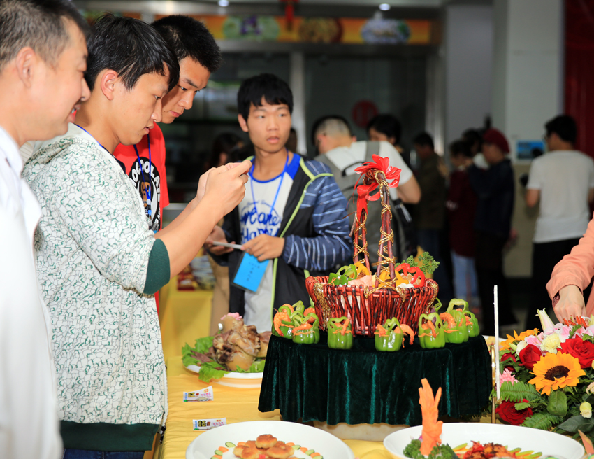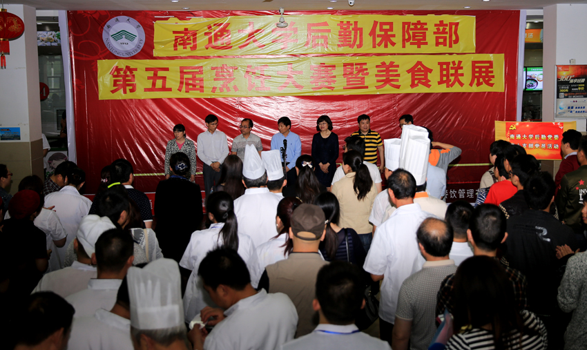 5月27日下午,beat365官网举办第五届烹饪大赛暨美食联展。南通市食品药品监督管理局餐饮安全监管处副处长郁卫丰,南通市餐饮商会常务副会长巫明鉴,江苏省餐饮业协会副会长、南通市旅游中专副校长孙勇出席开幕仪式。副校长樊小东宣布大赛开幕。