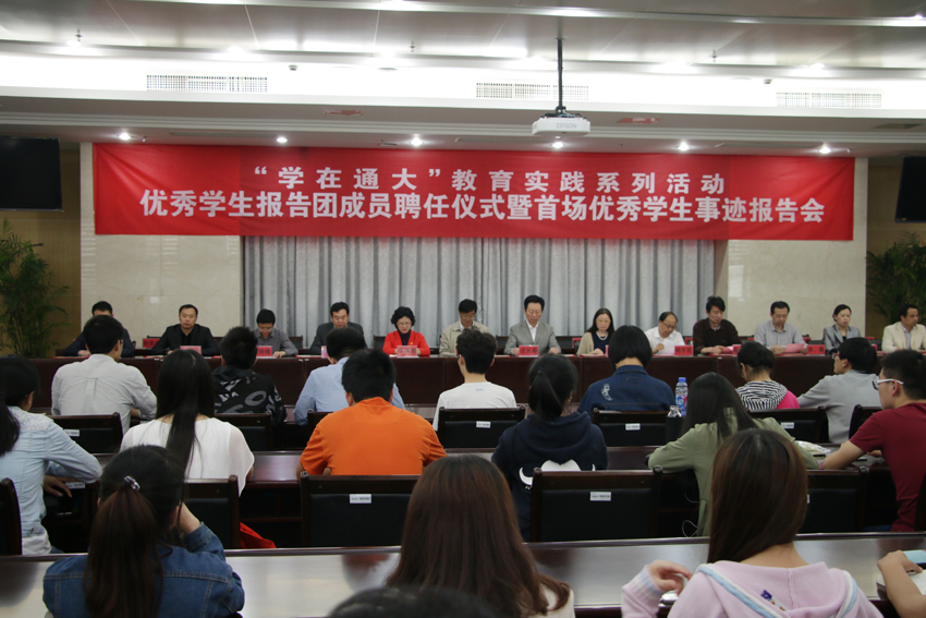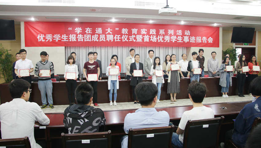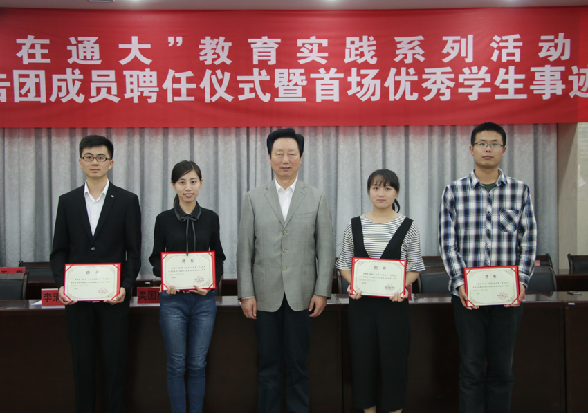 为响应学校“学在通大、干在通大、发展在通大”的号召,将建设“四有”大学理念融入工作实践,beat365官网在全校研究生、本科生中开展优秀大学生寻访活动,共遴选了34名学生代表组成优秀学生事迹报告团,树立了“勤学励志”、“科研达人”、“创新创业”、“道德标兵”、“公益实践”等五个方面的典型,旨在通过身边的典型,激励大学生勤奋学习,明德修身,励志成才。聘任仪式上,与会领导为优秀学生报告团成员颁发聘书。