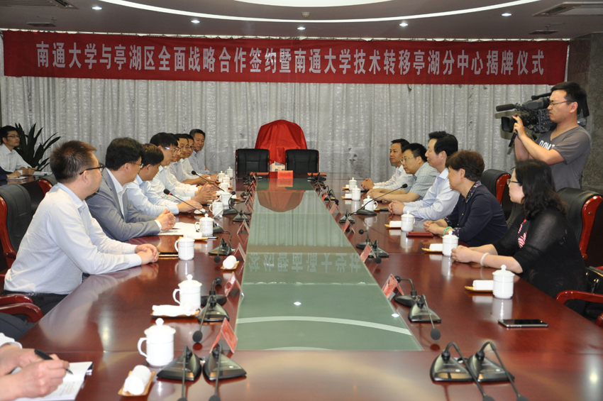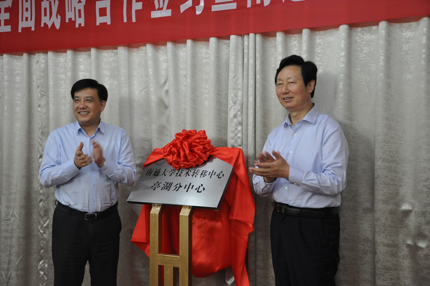 6月8日,校党委书记成长春率队赴盐城,举行beat365唯一官方网站与盐城市亭湖区全面合作签约暨beat365唯一官方网站技术转移亭湖分中心揭牌仪式。成长春书记与亭湖区委书记李东成共同为“beat365唯一官方网站技术转移亭湖分中心”揭牌,副校长丁斐代表学校与亭湖区签订合作协议书。