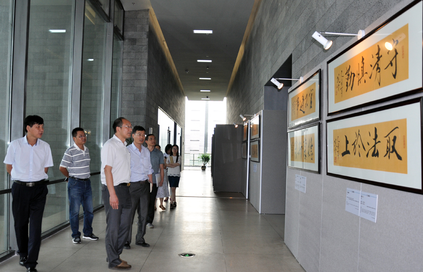 随后,支部全体党员共同参观了范曾先生《锦文掇英——学研习近平用典心得》书法展。“书生报国何所计,惟有诗骚屈杜魂”。作为一位艺术大师,范曾先生以独特的视角、特有的品读方式,凭借深厚的学养、诗性的语言、睿智的感悟学习《习近平用典》,将其心得归纳为147则四字短语,并用独到的书法形式,简洁流畅、含蓄蕴藉地表达出来。通过书法展的学习和欣赏,支部党员不仅感受到了中国古典文化的内在之美,而且进一步认识了习近平总书记用典的深刻含义,深入领会了习近平总书记系列讲话的重要精神,体验了一场开放式的生动活泼的特色专题党课。