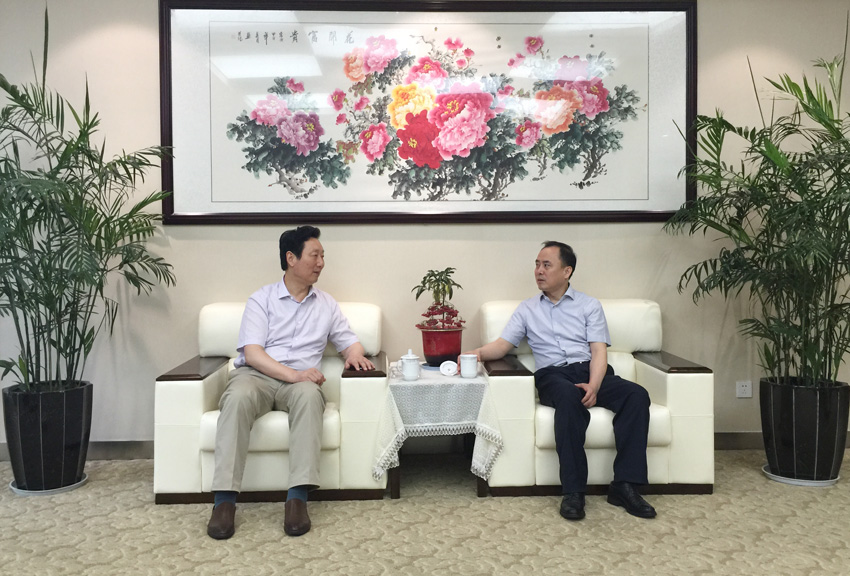 校党委书记成长春与通州区委书记宋乐伟交流。