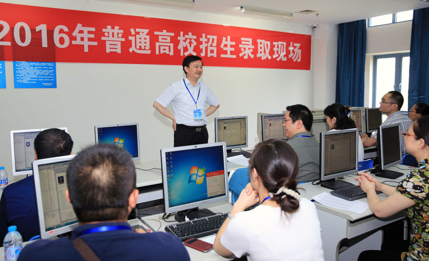 炎炎夏日,虽是暑假,beat365官网2016年本科招生录取工作现场依旧是一派繁忙的景象。7月20日上午,校长程纯来到这里,看望慰问奋战在招生录取一线的工作人员,了解beat365官网今年招生录取情况。