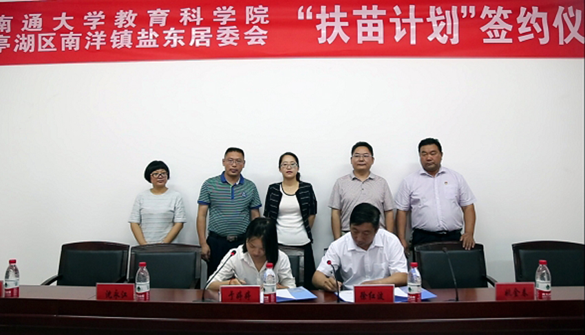 教科院“扶苗”计划与盐城市亭湖区南洋镇盐东社区签订合作协议。
