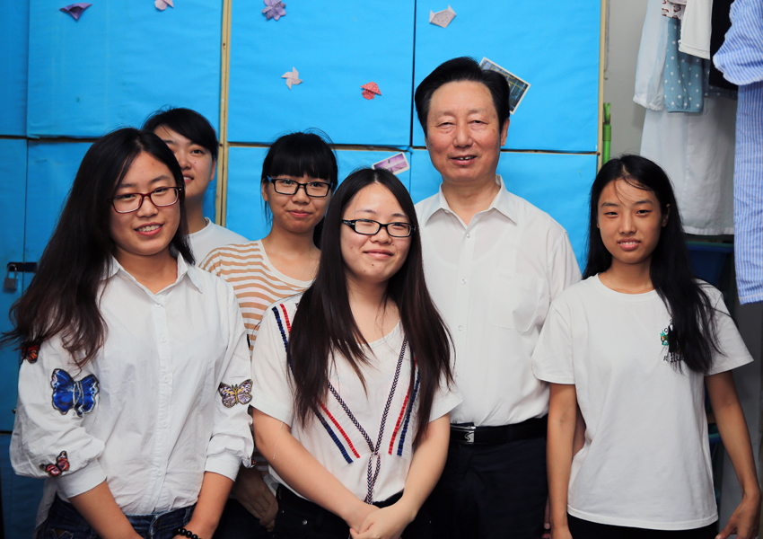 校党委书记成长春热情的与同学们合影。