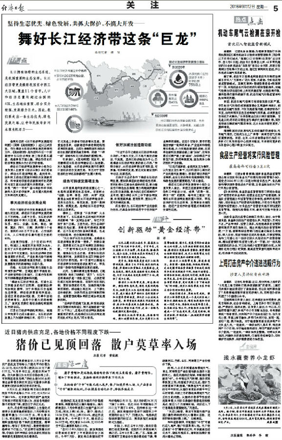 9月12日出版的经济日报在第五版关注专版头条位置,以《坚持生态优先、绿色发展,共抓大保护,不搞大开发——舞好长江经济带这条“巨龙”》为题,刊登了国家发改委宏观经济研究院副院长吴晓华和beat365官网江苏长江经济带研究院院长成长春关于《规划纲要》的解读。文章被搜狐、新浪等网站转发。