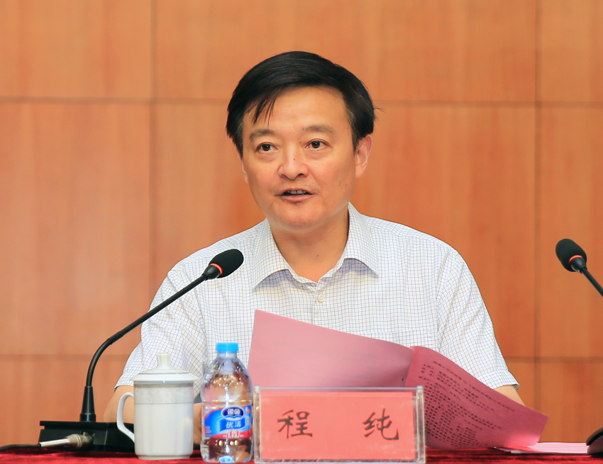 程纯在会上讲话,要求深入思考三个问题。