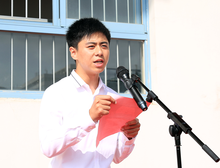 商学院国贸161班汪思源同学代表新生发言,他表示,大学四年中一定会强化自主学习能力,深入学习专业知识,广泛涉猎其他领域,勇于创新,敢于挑战,珍惜在校时间,脚踏实地,继往开来。