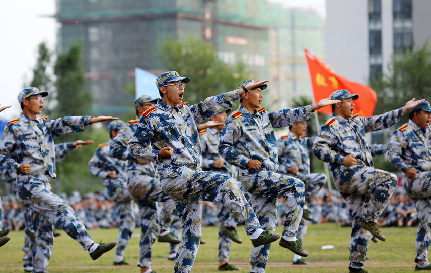 成长春宣布军训成果汇报开始。伴随着激昂的进行曲,24个学院的军训方阵依次走过主席台接受检阅。学员们士气高昂、军姿严整,阵列步伐整齐、院旗招展、口号嘹亮,展现了2016级新生的风采。分列式后进行了精彩的军训科目表演,男子军体拳和擒敌技术拳脚敏捷、沉着有力;女子花样队列表演创意新颖,以整齐划一的动作变化出“TD”、“红十字”等寓意深刻的图案;杏林学院48人的刺杀操方阵以压倒一切敌人的气概,展示出beat365官网学子吃苦耐劳、顽强拼搏的昂扬斗志和严格训练、团结协作的优良作风。