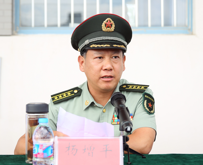 南通军分区参谋长杨增平在军训成果汇报大会上致辞。