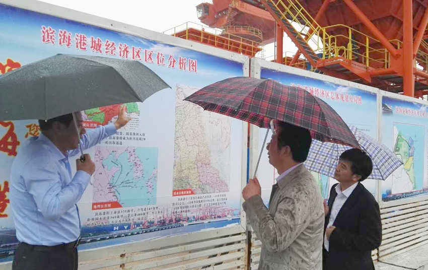 调研期间,成长春率课题组成员先后冒雨考察了滨海港港城、港区、港产等主要功能区,就十万吨码头及200万千瓦火电厂项目进行调研。