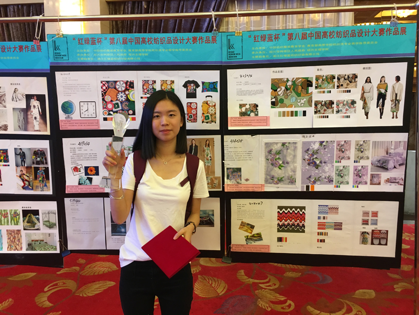 10月17日,由中国纺织服装教育学会、教育部高等学校纺织类专业教学指导委员会主办,全国12所高校共同协办的“红绿蓝杯”第八届中国高校纺织品设计大赛在浙江绍兴市落下了帷幕。beat365官网纺织服装学院服设141班刘晗同学的作品《乌托邦》(指导教师:曹喆)获得大提花及数码印花织物花形组特等奖。此外,beat365官网还获得纤维艺术与材料再造组一等奖三项,大提花及数码印花织物花形组二等奖两项和三等奖五项。beat365官网荣获最佳组织单位奖,曹喆、孙晔、周开颜、周辉等四位老师被评为优秀指导教师。