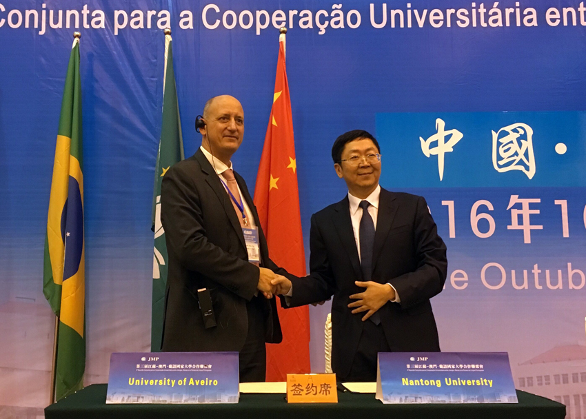 会议期间,蒋乃华与葡萄牙阿维罗大学副校长孔卡罗·迪亚斯分别代表两校签订合作备忘录。