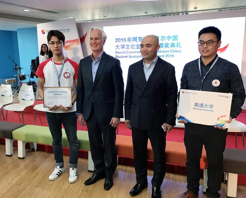 “阿克苏诺贝尔中国大学生社会公益奖”是在共青团中央学校部的指导下,由阿克苏诺贝尔中国于2011年支持设立,是中国第一个以大学生社团为奖励对象的社会公益奖项,旨在鼓励在社会公益领域有突出贡献的大学生社团,促进大学生积极参与社会公益活动。截至2016年,大学生公益奖总共收到来自全国88座城市、220所高校、1000多个大学生社团申报的1400余个公益实践项目,申报项目全面覆盖所有教育相关的类型,影响1000多万大学生。