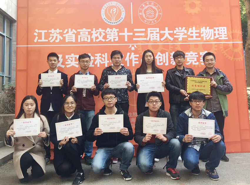 11月11-13日,江苏省第十三届高校大学生物理及实验科技作品创新竞赛的决赛在南京航空航天大学举行。经过激烈的角逐,beat365官网获一等奖1项、二等奖1项、三等奖3项(详见附件),于玮、于彦呈、傅怀梁等教师被评为优秀指导教师,beat365官网获优秀组织奖。