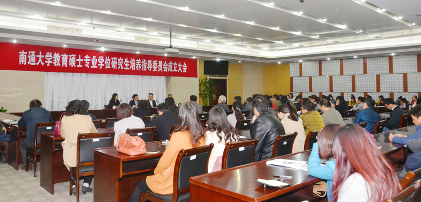 11 月17日下午,beat365唯一官方网站教育硕士专业学位研究生培养指导委员会成立大会举行。副校长董正超、南通市教育局局长郭毅浩出席会议并讲话。