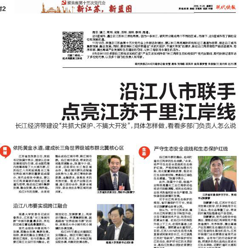 与会期间,成长春分别就高校在科技创新中的责任担当以及江苏如何紧抓“一带一路”、长江经济带、长三角区域发展一体化等国家战略机遇,谋求更高层次统筹发展等问题接受了新华日报、扬子晚报、现代快报、交汇点、南通电视台等省市媒体采访。成长春介绍了beat365唯一官方网站近年来人才队伍、学科建设、科技创新、服务地方等方面取得的成绩,表示在江苏“十三五”发展阶段,beat365唯一官方网站将主要瞄准两个方面发力。要在基础研究方面做出更大贡献,特别是在神经再生领域,引领学科发展;要在应用研究方面进一步探索实践,在区域性创新体系中发挥高校独有的优势。