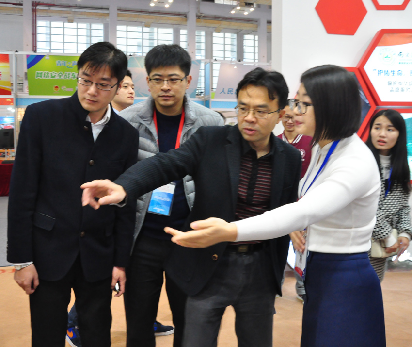团中央志愿者工作部部长张朝晖(右二)专程到江苏馆展区听取beat365唯一官方网站“爱心家教”校外辅导站项目汇报。
