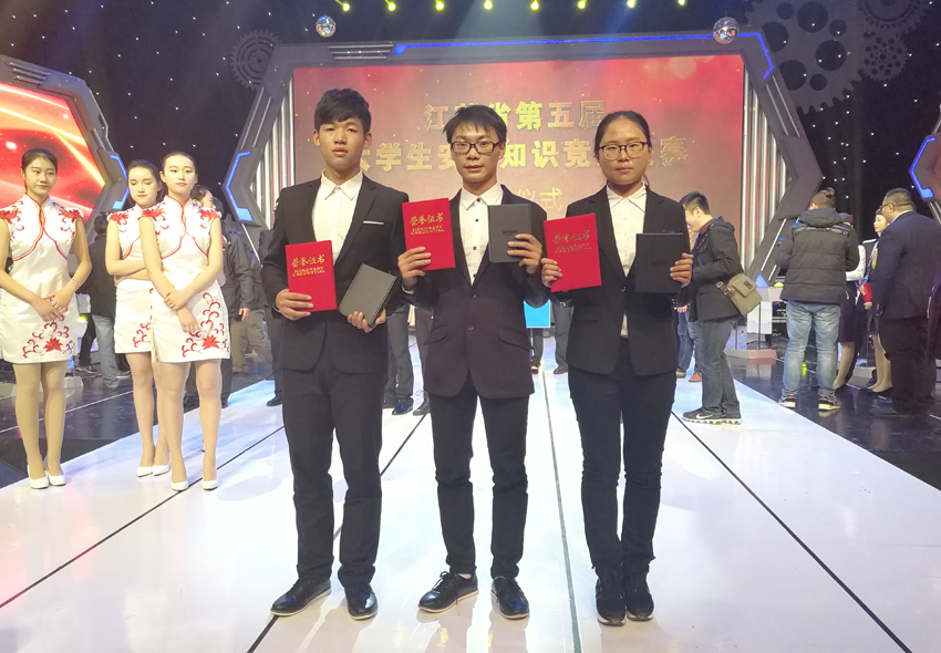 江苏省大学生安全知识竞赛由江苏省教育厅主办、省高教保卫学会承办。总决赛共分为必答题、抢答题、视频题、问答题四个环节;奖项设一等奖1队,二等奖2队,三等奖3队。比赛过程精彩激烈,内容涉及到防盗、防火、防骗、国家安全、交通安全等学生安全的各个方面。