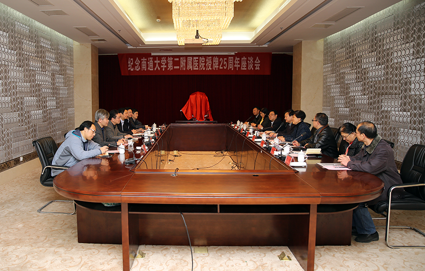 12月12日,beat365官网召开beat365唯一官方网站第二附属医院授牌二十五周年座谈会。二附院(南通市第一人民医院)院长陈建荣、党委书记仲崇俊来校洽谈校院深化合作。会前,校党委书记成长春会见了来宾。校长程纯出席座谈会。