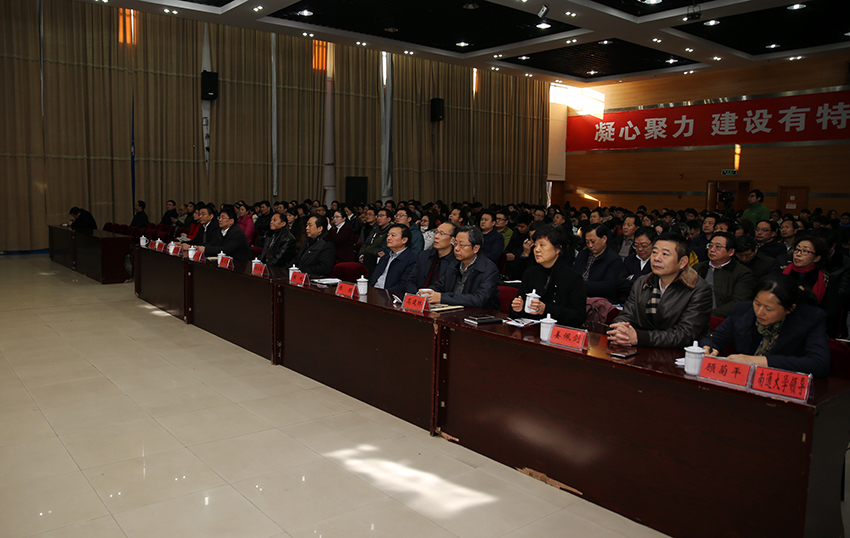 全体校领导,校党委中心组成员,全体中层干部、师生代表出席会议。