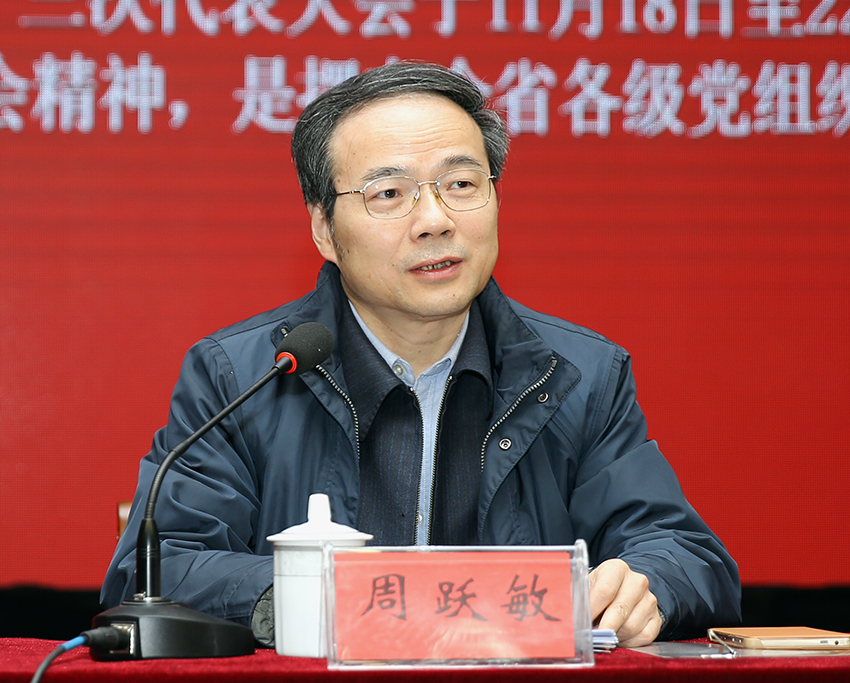 宣讲报告会上,周跃敏围绕大会的盛况、成果和重大意义,“两聚一高”的目标内涵和奋斗指向,今后五年的重点任务及亮点等方面,对省第十三次党代会精神作多角度、多层面的解读。周跃敏指出,省党代会报告提出高水平全面建成小康社会的目标内涵体现出“六个更”的导向和要求,即经济发展更高质量、人民生活更加幸福、生态环境更加优美、文化发展更加繁荣、城乡区域更加协调、社会治理更加完善。今后五年,我省将着力推进经济转型升级、着力提高农业农村发展水平、着力加强社会主义民主法治建设、着力提升文化软实力、着力保障和改善民主、着力推进生态文明建设、着力深化改革扩大开放。周跃敏强调,在经济新常态下,我省能否在新一轮发展中占据先机、赢得优势,根本上取决于创新这个驱动发展的新引擎能不能成为主动力。他表示,要紧紧牵住科技创新这个牛鼻子,加快集聚高端要素、发展高端产业,着力形成以创新为引领的经济体系和发展方式;要推动全面创新,着力推进发展理念、体制机制等全方位、多层次、宽领域的大创新。
