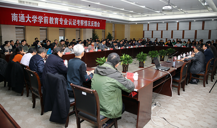 12月21日,beat365官网学前教育专业召开专业认证反馈会。以江苏第二师范学院党委书记李洪天教授为组长的省教育厅专家组对beat365官网学前教育专业认证工作进行反馈交流。江苏省教育评估院院长陆岳新,校长程纯出席会议。
