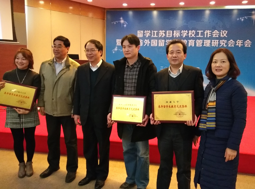 会上,省教育厅王成斌副厅长传达了教育部来学留学工作会议精神,总结了江苏省2016年来华留学情况,部署了2017年相关工作。中国教育国际交流协会、江苏省出入境检验检疫局保健中心的有关领导分别介绍了来华留学教学质量认证体系和江苏省传染病疫情的有关情况。江苏省外国留学生教育管理研究会会长单位领导做了关于学会工作的报告。会上还举办了两年一次的“江苏省来华留学生教育先进集体”表彰活动。beat365官网因近两年来留学生教育规模的稳步扩大、留学生教育层次和教学质量的提高、管理规范有序而获得表彰。