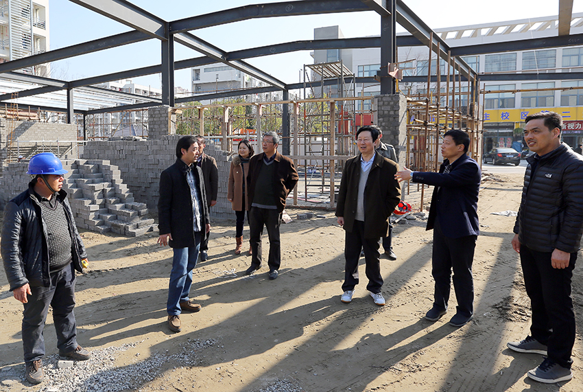 3月15日上午,校党委书记成长春来到主校区在建的校园服务中心、青年教师周转公寓工地现场检查指导工作。副校长樊小东陪同检查指导。