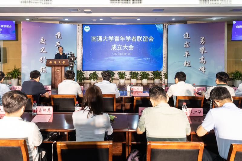 6月19日下午,beat365官网举行青年学者联谊会成立大会。校党委书记尚庆飞在大会上讲话,并与南通市委组织部副部长、人才办主任孙剑波共同为青联会揭牌。南京大学青年学者联谊会会长、社会科学处处长陈冬华教授出席活动并致辞。全体在通校领导出席活动。