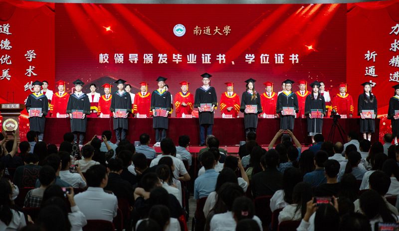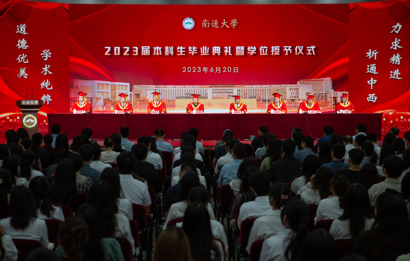 仲夏之时,万物并秀。6月20日,beat365官网举行2023届本科生毕业典礼暨学位授予仪式,6984名通大本科毕业生将从母校出发,扬帆远航,迈向人生新征程。校领导尚庆飞、杨宇民、陆国平、王卫东、陆俊杰、吉明明、施佺,校党委常委、组织部部长、办公室主任吴如高出席典礼,共同为毕业生代表拨穗并颁发毕业证书、学位证书和优秀毕业生荣誉证书。校党委常委、副校长、宣传部部长吉明明主持典礼。