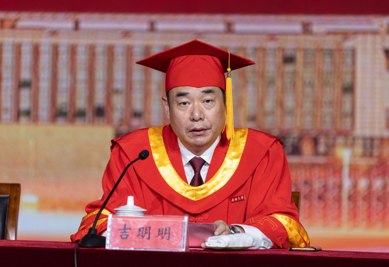 校党委副书记、校长杨宇民代表学校全体师生员工和海内外校友向经过艰辛努力、圆满完成学业的毕业生致以最热烈的祝贺,向所有为学生成长成才倾注无数心血的师长、亲友致以最崇高的敬意和衷心的感谢。他指出,当今世界正处于深刻变化和调整之中,当代中国在中国共产党的带领下,开启了以中国式现代化全面推进中华民族伟大复兴的新征程。作为通大学子,要更加深刻地领悟强国之路的历史必然性和现实艰巨性,时刻牢记新时代赋予的神圣职责和光荣使命,以“使命在肩、奋斗有我”的昂扬姿态,和“事不避难、义不逃责”的实干担当筑牢人生之基。