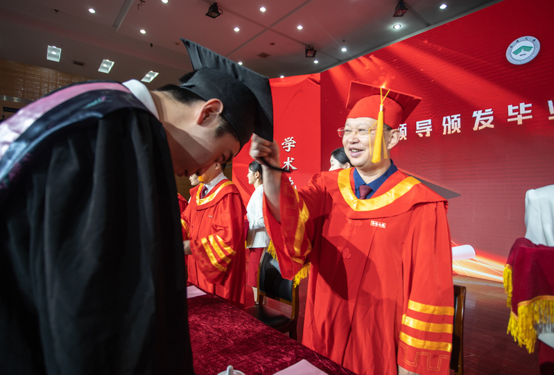 校党委书记尚庆飞为毕业生拨穗。