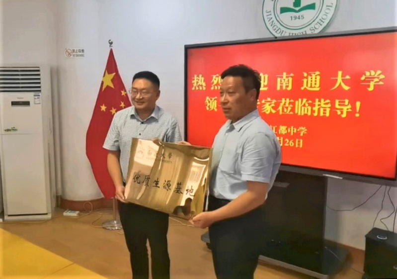 又讯 6月26日下午,校党委副书记、校长杨宇民一行前往江苏省江都中学举行“beat365唯一官方网站优质生源基地”签约授牌仪式。
