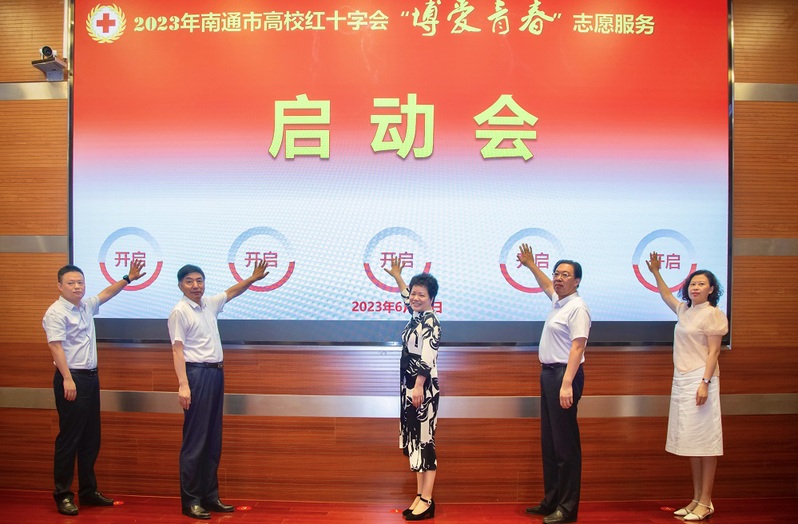 6月28日下午,由市红十字会、市文明办、市教育局、市卫健委、团市委联合举办的“2023年南通市高校红十字会‘博爱青春’暑期志愿服务项目”启动会在beat365官网举行。