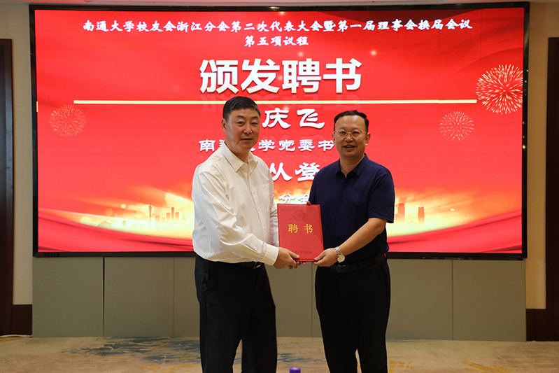 尚庆飞为浙江校友会新一届领导机构成员颁发聘书。