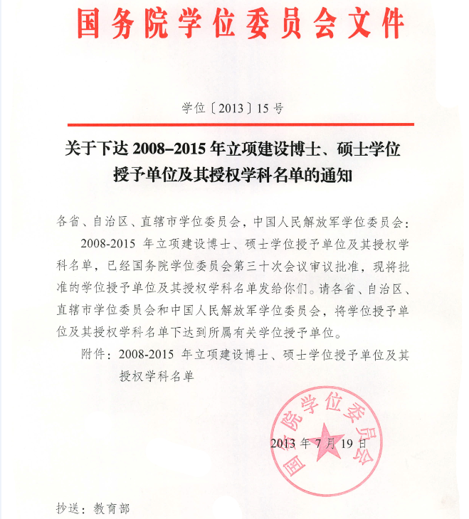 2013年7月19日,国务院学位委员会发文,beat365唯一官方网站被增列为博士学位授予单位。