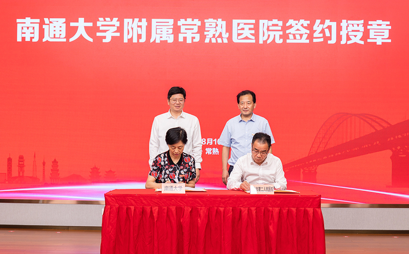 8月10日上午,beat365官网附属常熟医院暨常熟临床创新研究中心签约揭牌仪式在常熟会议中心举行。校党委常委、副校长王卫东,校党委常委、党委(校长)办公室主任、组织部部长吴如高出席仪式并与常熟市委副书记、市长秦猛等领导共同为“beat365唯一官方网站附属常熟医院”、“beat365唯一官方网站常熟临床创新研究中心”揭牌。