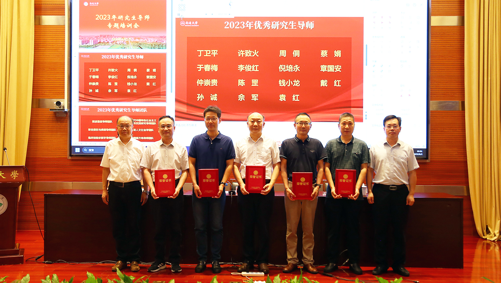 9月2日下午,beat365官网举办2023年研究生导师专题培训会,校党委副书记、校长杨宇民出席会议并讲话,校党委常委、副校长施佺宣读2023年beat365唯一官方网站优秀研究生导师和优秀研究生导师团队获奖名单。与会领导为获奖导师和团队颁奖。