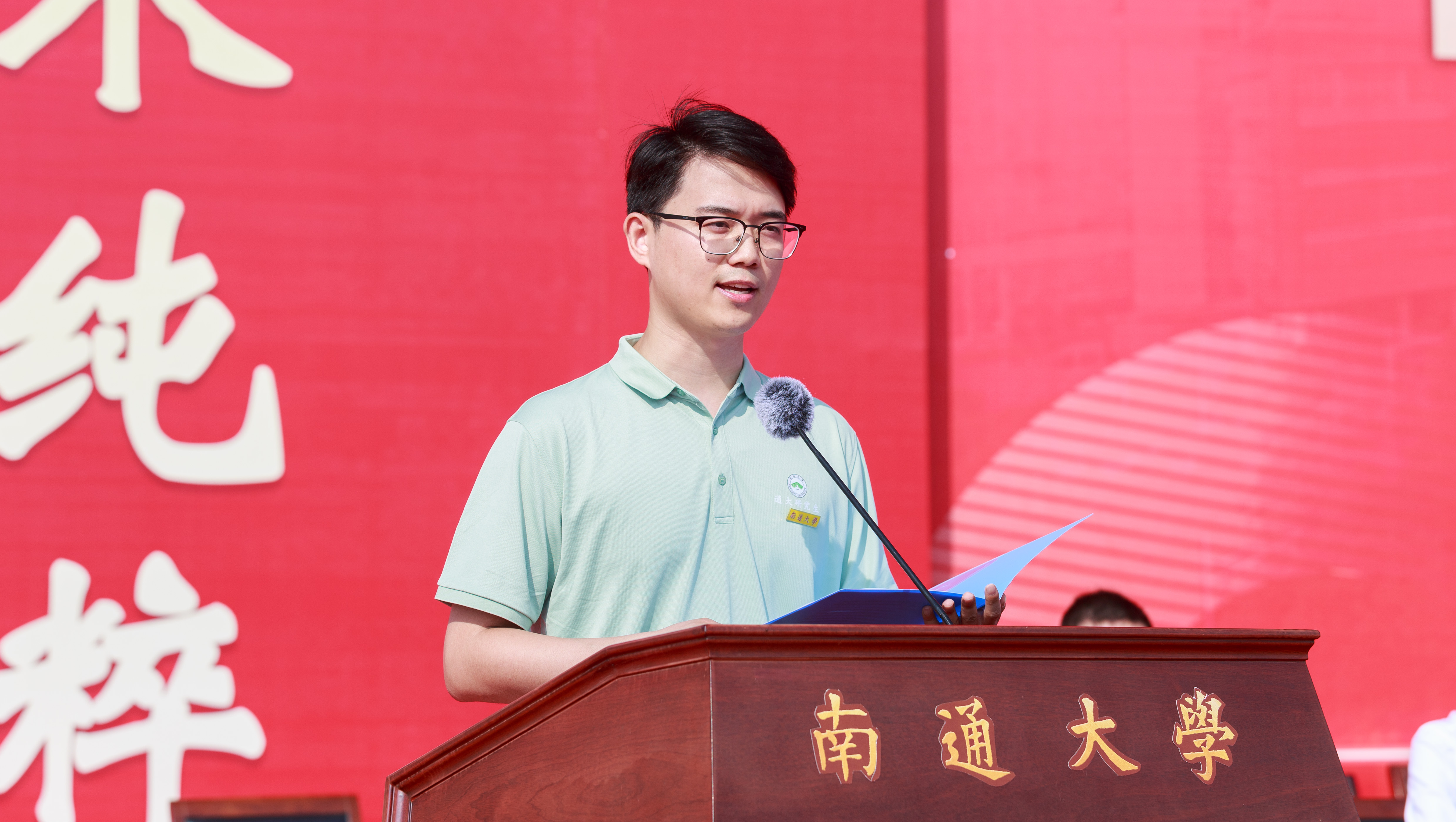 医学院2023级临床医学博士研究生卢志超作为研究生新生代表发言。他深情回顾了在通大的八年学医之路,感谢通大让他成长为更好的自己。他号召同学们在通大充分挖掘自身无限潜力,拼搏奋进,一起做敢于有梦、勇于追梦、勤于圆梦的新通大人,为建设更强、更美、更好的通大而不懈奋斗。