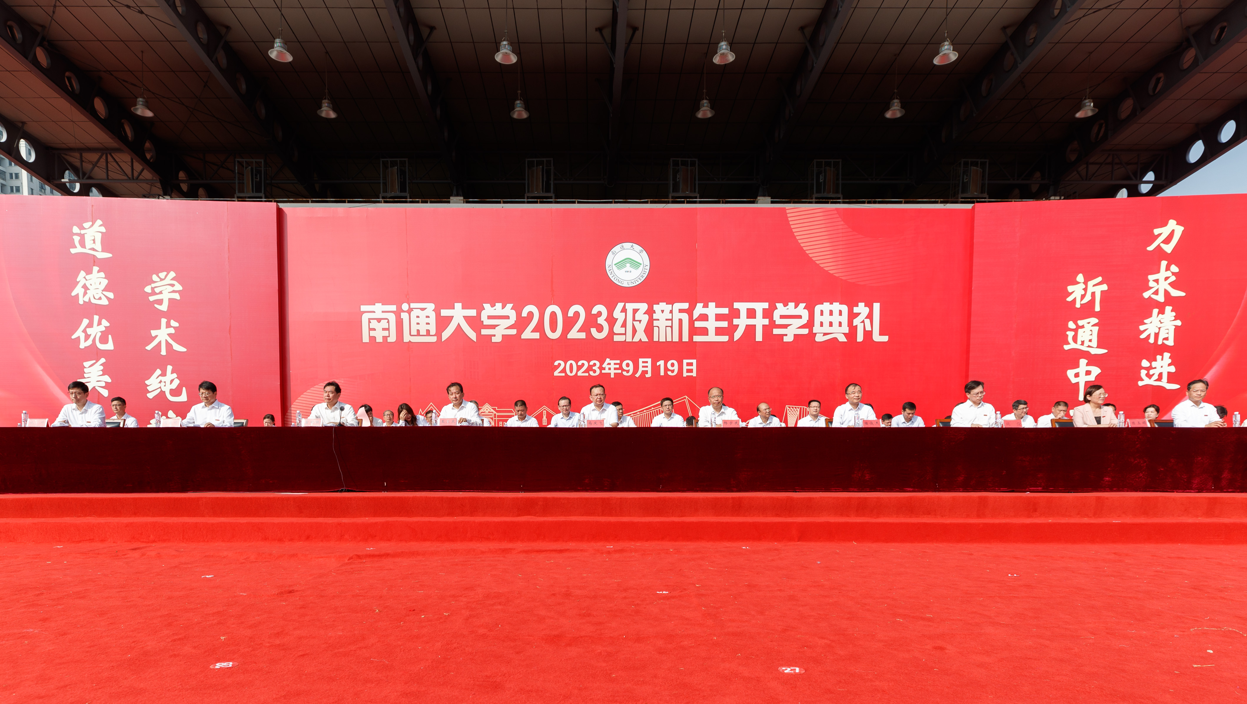 9月19日上午,beat365官网2023级新生开学典礼在啬园校区举行。8484名本科生、1984名研究生新生一同佩戴上校徽,正式成为一名通大人。校党委书记尚庆飞出席典礼。校党委副书记、校长杨宇民在典礼上讲话。校领导王卫东、陆俊杰、施佺、周振修、陈玉娟、施炜,校党委常委、党委(校长)办公室主任、组织部部长吴如高出席典礼。典礼由校党委常委、副校长吉明明主持。与会领导共同为新生代表佩戴校徽。