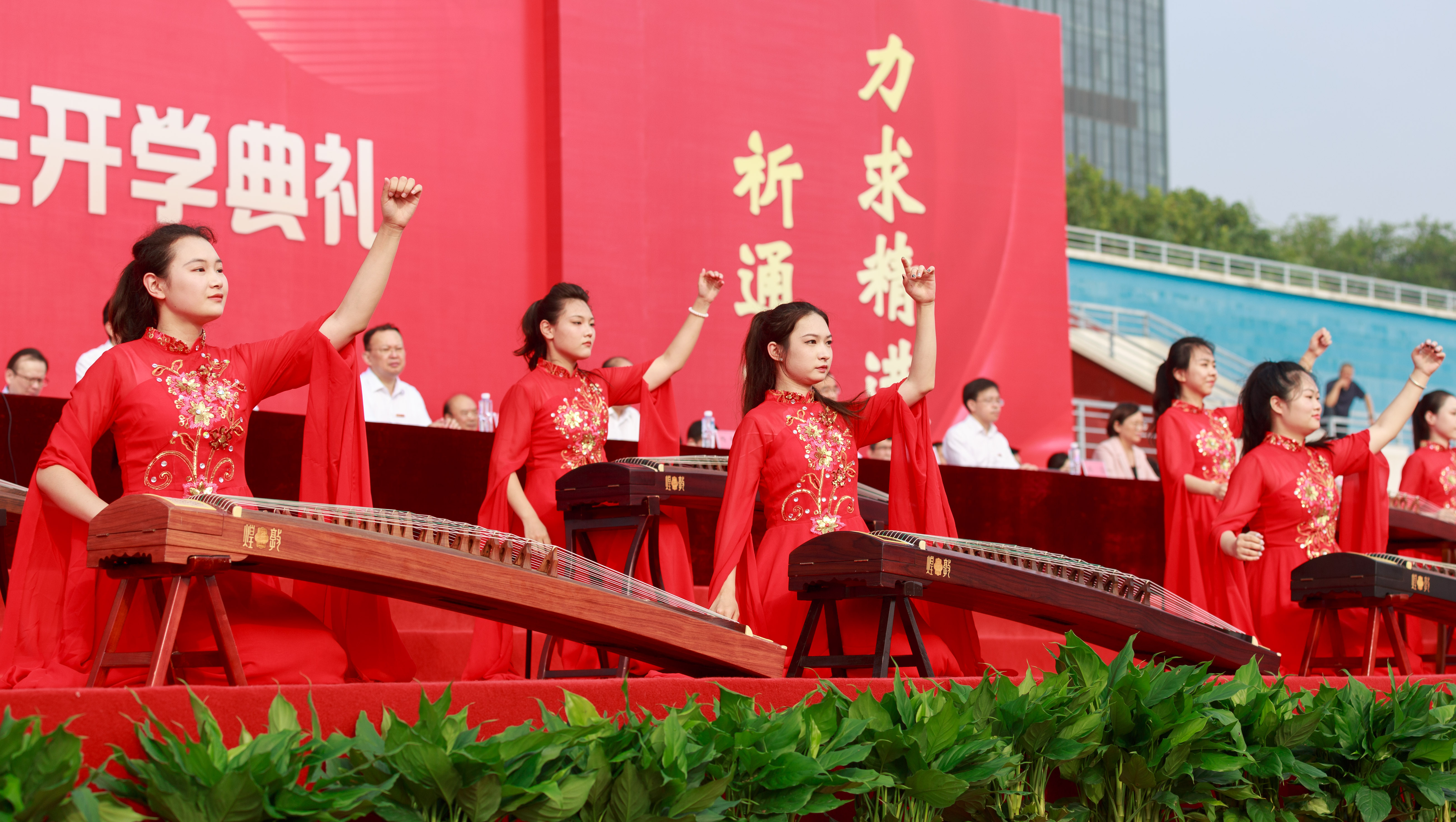 典礼前,艺术学院学生带来了古筝合奏《盛世国乐》,体育科学学院学生带来舞龙舞狮表演《飞龙醒狮耀中华》,各学院新生辅导员为同学们献上了歌曲联唱《最初的梦想》《起风了》《我爱你中国》等,校大学生艺术团合唱团与全体师生合唱《beat365唯一官方网站校歌》,现场气氛热烈。典礼在全场合唱《歌唱祖国》中落下帷幕,全体新生齐声呐喊出“请党放心,强国有我!请党放心,复兴有我!”的铮铮誓词。