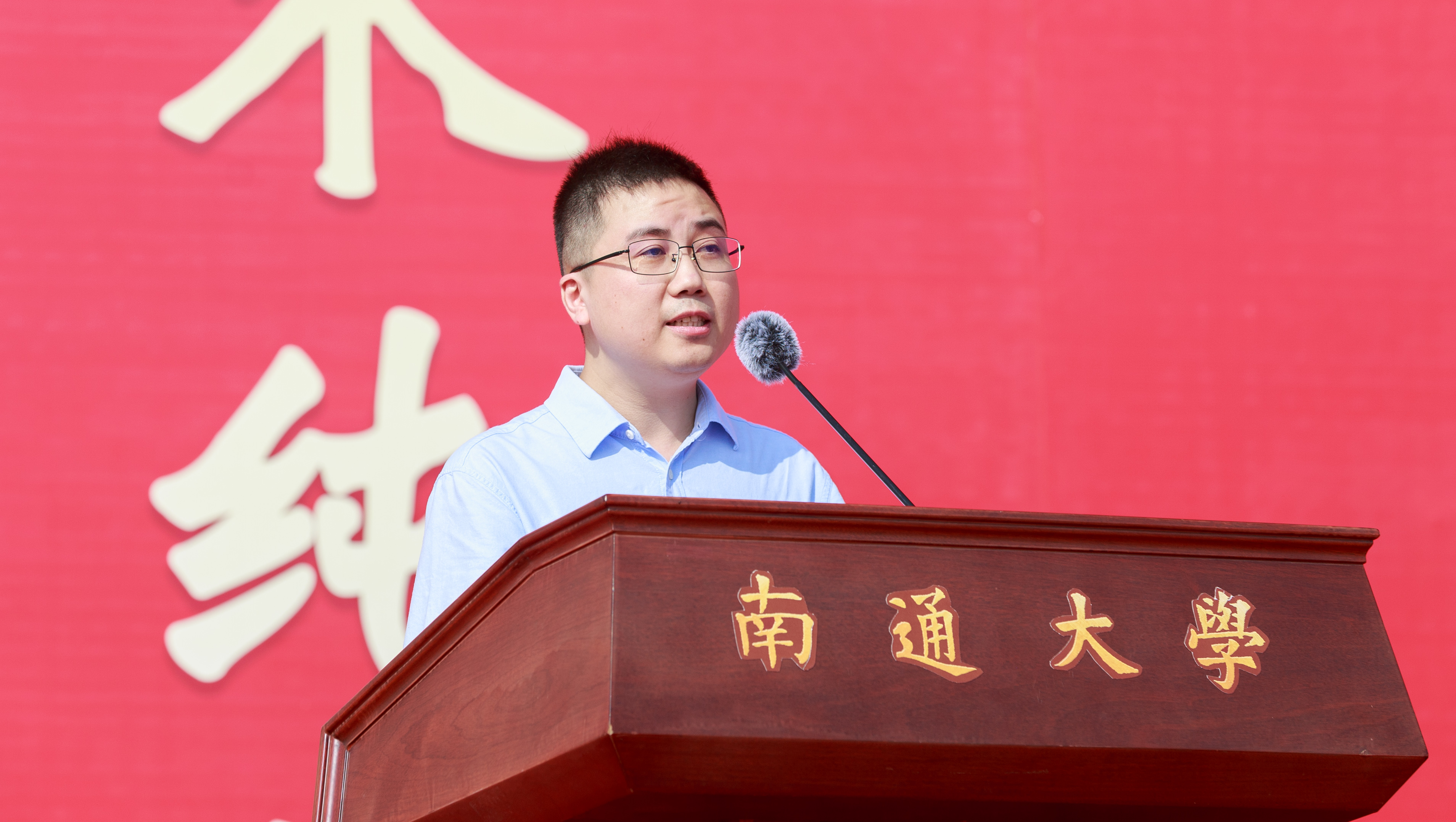 化学化工学院钱涛教授作为教师代表发言。他表示,青年大学生作为青年队伍的中坚力量,承载着民族复兴的时代重任。他代表学校教师向全体新生郑重承诺,做同学们思想上的知心人、学习上的热心人、科研上的引路人。他希望,每位学子能在新的求学阶段提升“家国天下,勇于担当”的格局,锤炼“精微致大,专业专注”的品质,坚守“求真至善,自立自强”的初心,在最美的时光中收获“春风化雨乐未央”的喜悦,感悟“道德优美,学术纯粹”的真谛,在百十年通大文化润养中成长为“祈通中西,力求精进”的通大人。