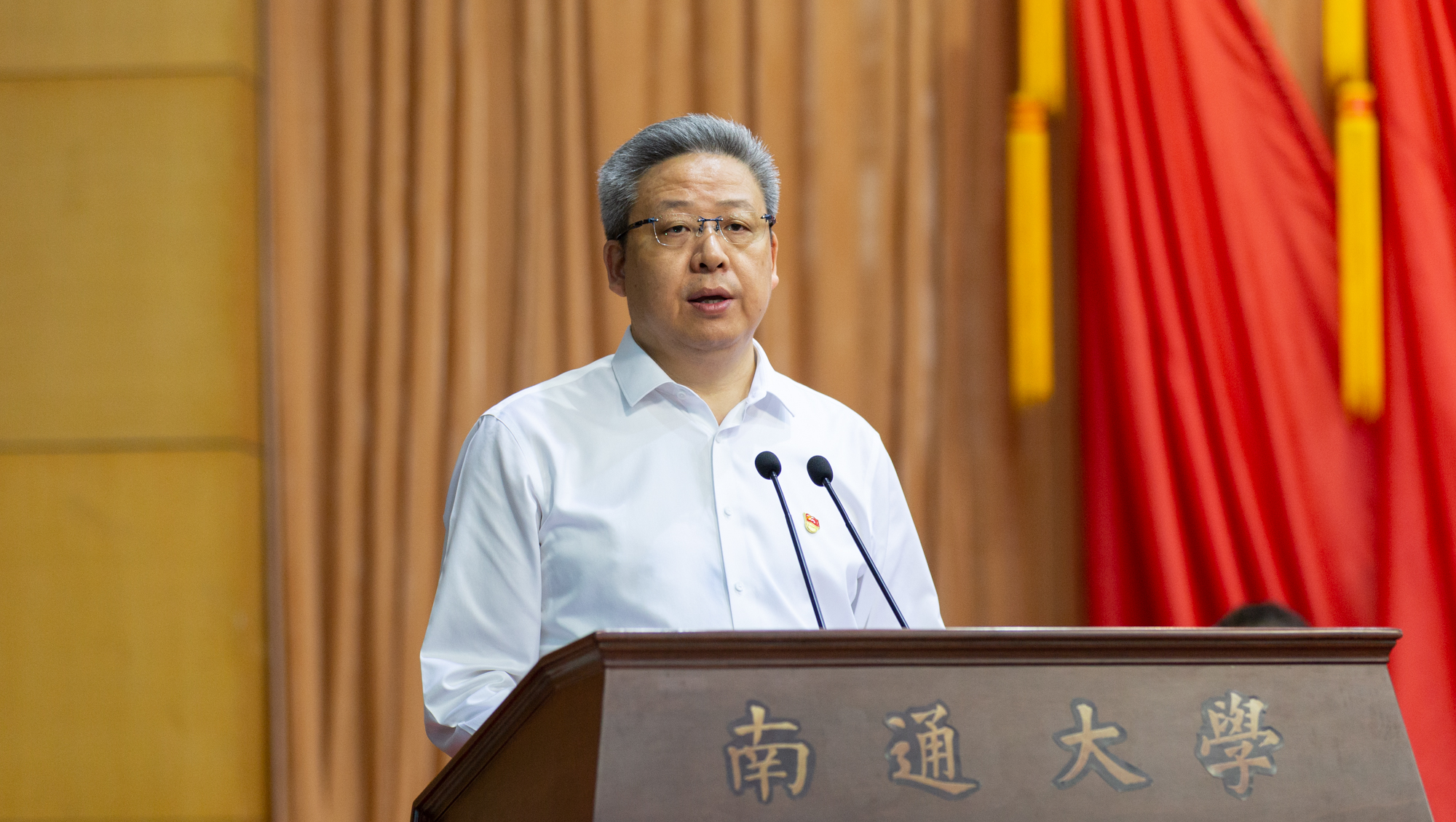 尚庆飞强调,要建设的特色鲜明国内一流大学,是坚守育人初心使命、培养高素质时代新人的一流大学,是聚焦世界科技前沿、推动原始创新能力提升的一流大学,是瞄准国家重大需求、推动关键核心技术突破的一流大学,是扎根江海大地、有效服务区域经济社会发展的一流大学,是传承创新丰厚历史底蕴、承载民族复兴新期盼的一流大学。他指出,学校将大力实施尊师重才战略、筑原造峰战略、改革驱动战略、开放融合战略、文化引领战略等“五大战略”,始终坚持把立德树人作为根本任务,牢牢把握内涵式发展这个目标方向,全面贯彻新发展理念,扎根江海大地,赓续优良传统,明确重点任务,抓住关键环节,实施“培根铸魂行动”,全面提升人才培养质量;实施“学科突破行动”,加快一流学科建设步伐;实施“人才聚力行动”,不断厚植人才发展优势;实施“科技攀升行动”,持续提升科技创新源动力;实施“文科振兴行动”,全力推进人文社科高质量发展;实施“开放拓展行动”,加快构建开放办学新格局;实施“治理增效行动”,充分激发学校办学活力;实施“文化赋能行动”,不断增强发展内生动力;实施“服务南通行动”,推进城校深度融合发展;实施“医教研协同行动”,全力打造医学教育新高地,通过“十大行动”,迈出建设特色鲜明的国内一流大学坚实步伐。